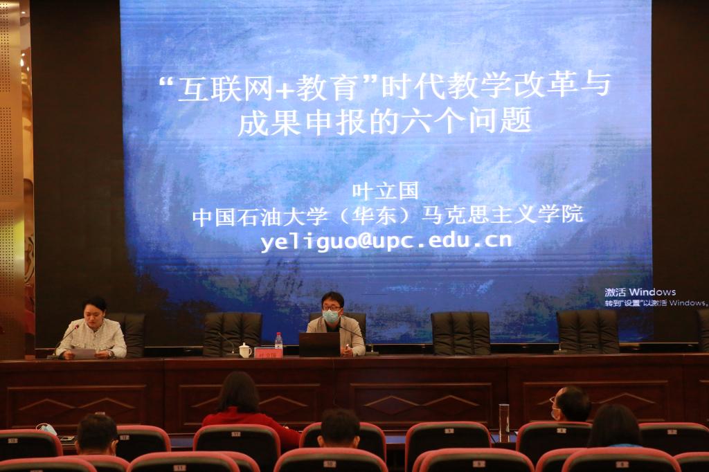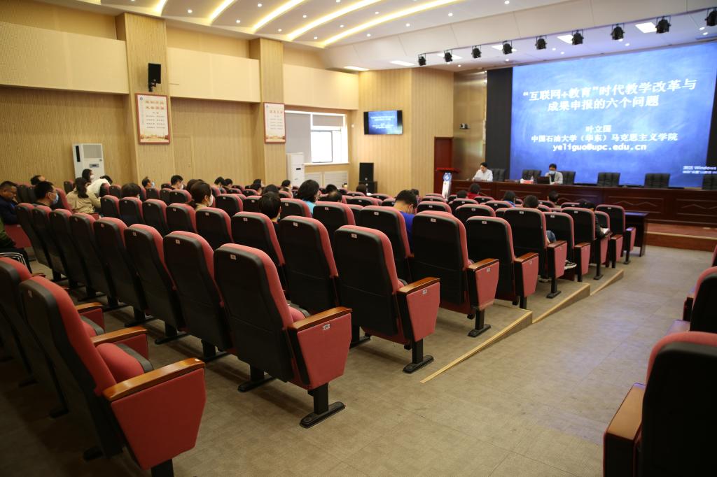 为进一步落实习近平总书记关于思政课教学的重要指示,提升思政课思想性、理论性、针对性和亲和力,提升教学质量,多出优质教学成果,中国石油大学(华东)叶立国副教授做客公司,19日上午,在J9-144报告厅做了题为“‘互联网+教育’时代教学改革与成果申报的六个问题”的主题报告,公司全体教职工参加报告会,会议由副经理常春主持。