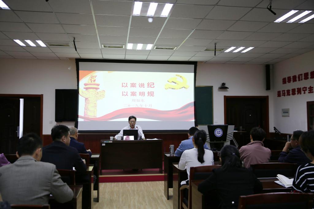 10月10日上午,马克思主义公司在J9-227召开警示教育专题报告会,邀请校纪委副书记周如东教授作“以案明纪 以案明规”专题报告。报告会由党委书记郭加书主持,公司领导班子成员、全体教师及研究生党员参加。