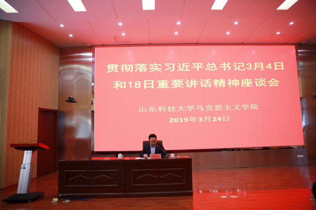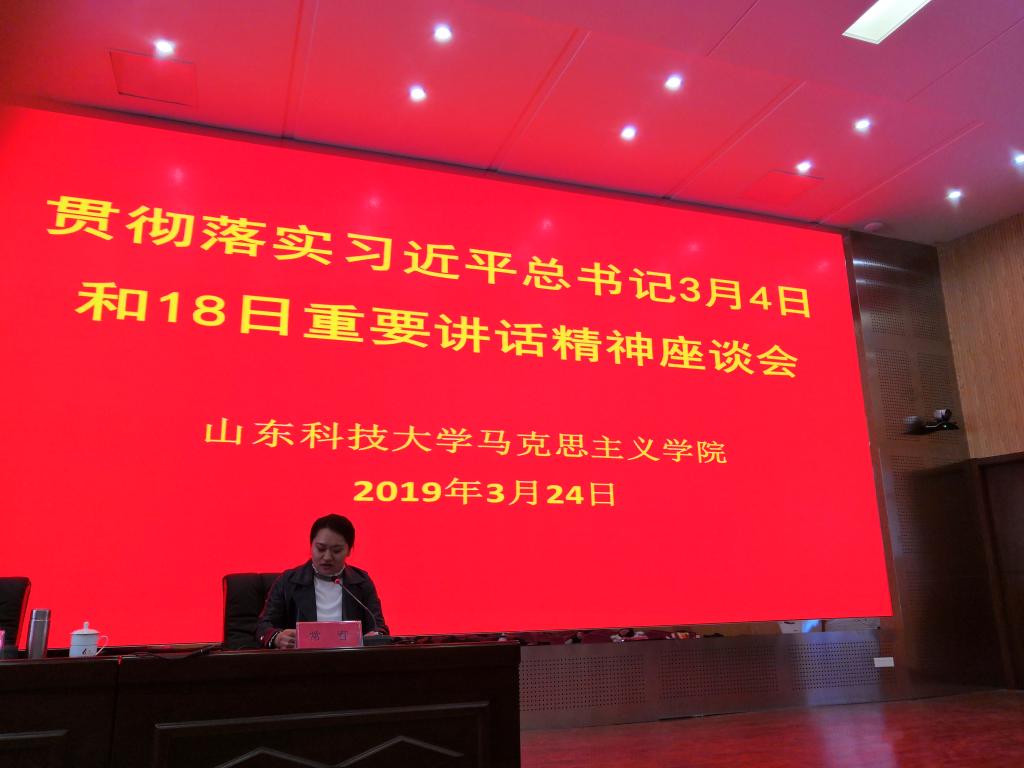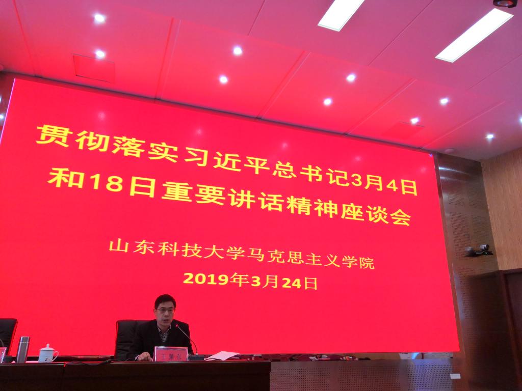 3月24日上午,谈球吧官方网站在J9-144举行“贯彻落实习近平总书记3月4日和18日重要讲话精神座谈会”,公司全体教师及马克思主义理论学科研究生参加会议。会议由经理逄奉辉主持。