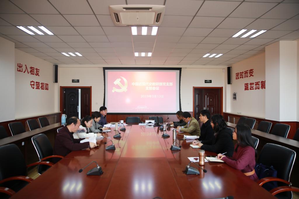 3月13日,中国近现代史教研部党支部在J9-223会议室召开支部党员大会,会议确定三个主题:2018年度党支部组织生活会和开展民主评议党员;学习《中国共产党支部工作条例(试行)》;就“两会”发表看法。会议由支部书记宋开金主持,公司副经理邵勇与支部全体党员参加,两位新进党员教师列席。