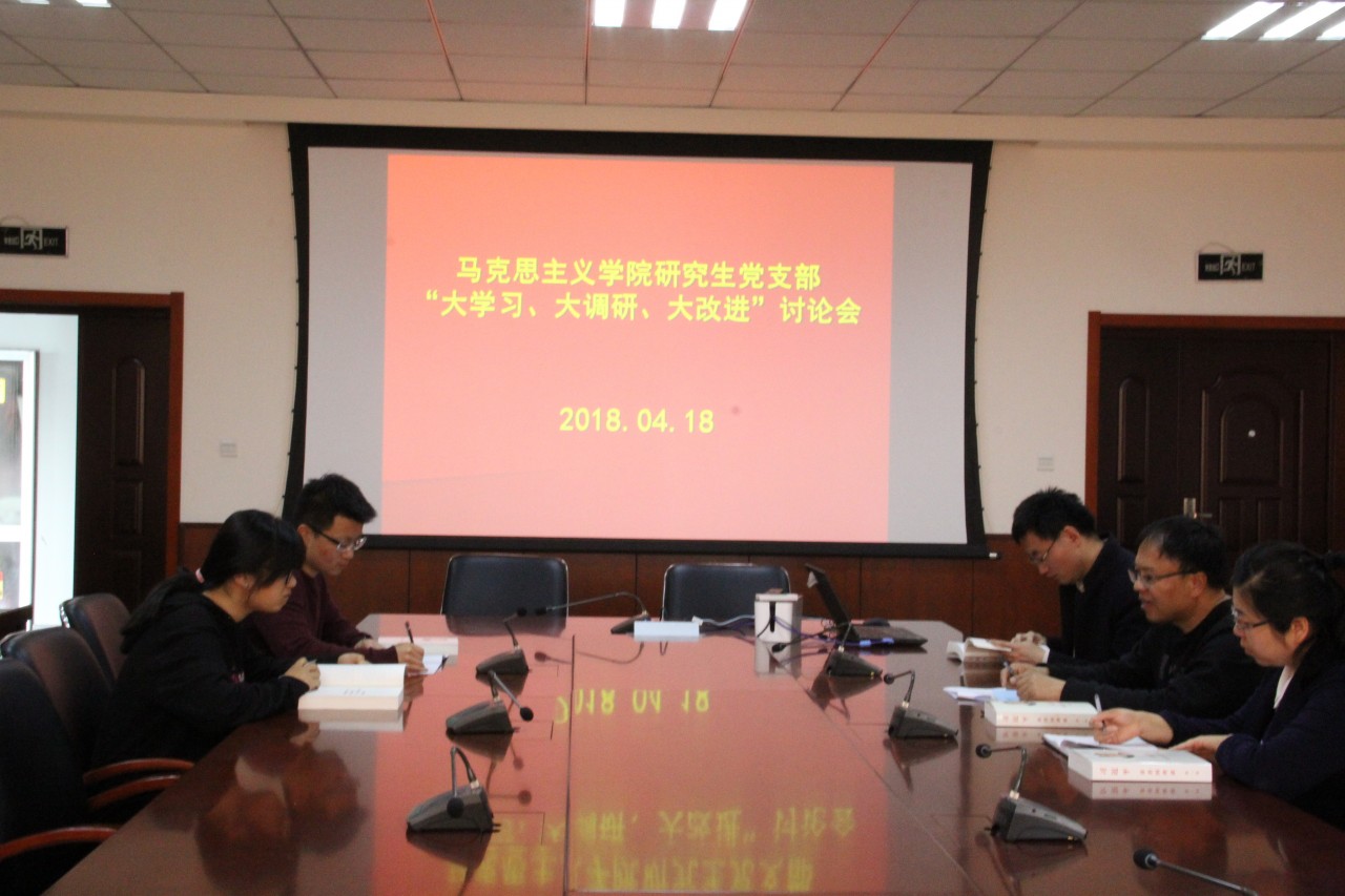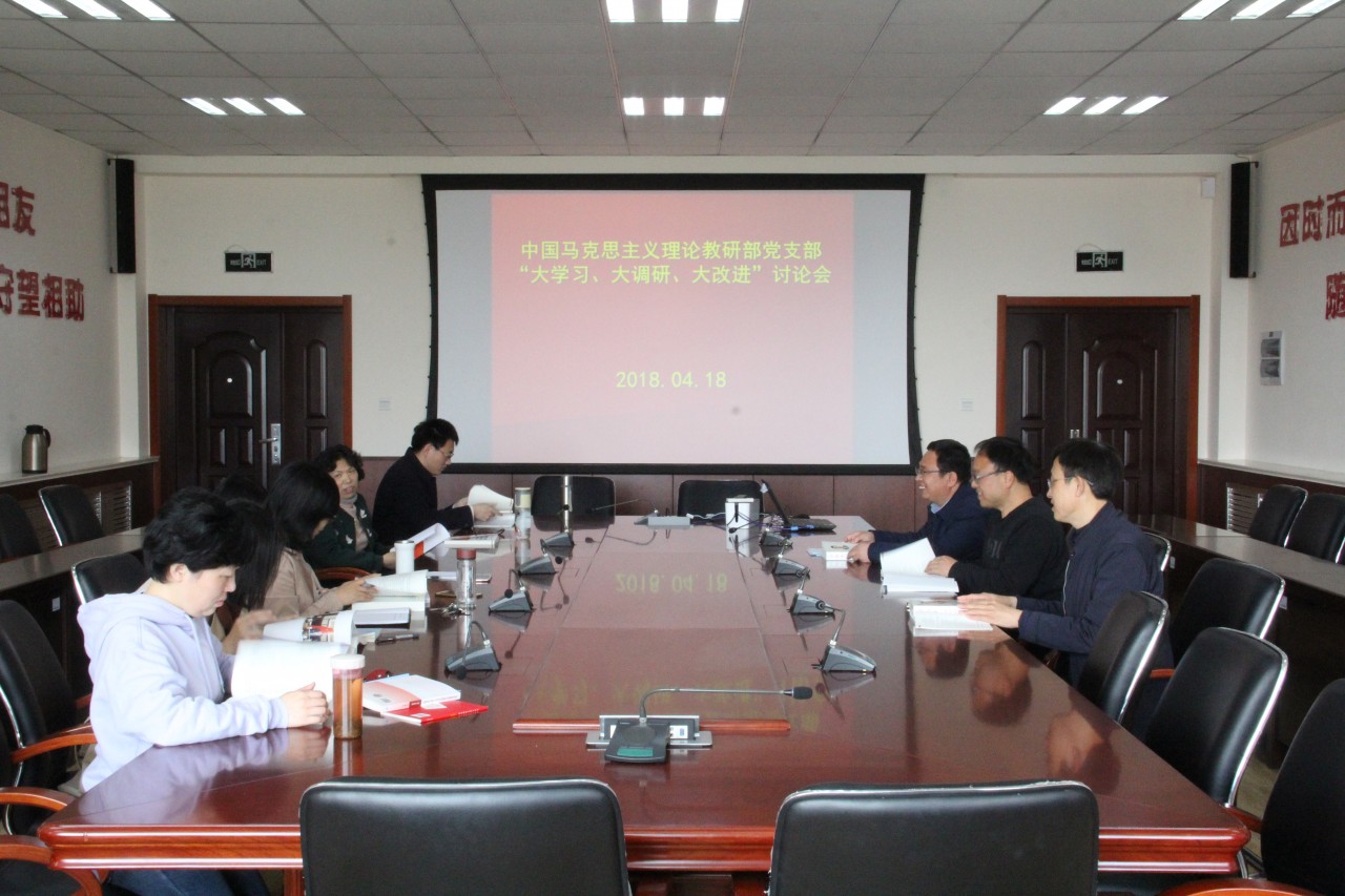 2018年4月17日,马克思主义基本原理教研部党支部召开“大学习、大调研、大改进”讨论会,经理逄奉辉参加指导会议,支部全体党员参加。