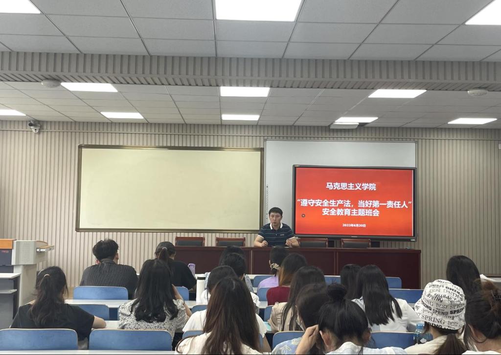 本次主题班会共分为三个流程。首先,邀请辅导员邴建伟召开安全教育主题班会,他全方位、多角度地为同学们讲解了安全方面的知识及同员工活中存在的安全隐患,敲响安全警钟;其次,在B站、CCTV等观看《生命重于泰山》电视专题片和《红线》《生命至上、警钟长鸣》等警示片;最后,在班会现场开展安全知识网上竞答,同学们都取得优异的成绩。