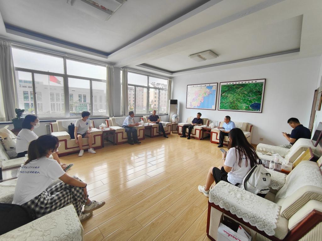 7月11日上午,实践团队来到张家楼街道办事处,与街道党工委书记车明超、区党史研究中心主任刘洪亮、副主任杜银远座谈交流,探讨张家楼街道乡村产业振兴情况。张家楼街道近年来始终坚持“党建统领、乡村振兴”工作主线,以“做强特色、走在前列”为目标定位,促进一二三产业融合发展,乡村产业振兴发展呈现总体向上的良好态势。但在当前疫情反复的形势下,企业发展、就业形势等方面存在着一些发展困难,需要深入研究和予以解决。