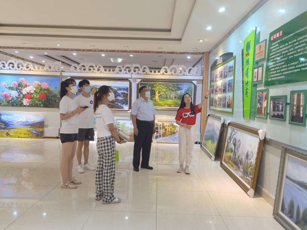 下午,在街道办事处工作人员李雪莲、高洁的陪同下,实践团队来到大泥沟头村,与老书记张财金、新书记王武星等座谈。2003年绿泽画院落户于此,与达尼画家村联手互动,成立绿泽美术职业公司,建成绿泽美术馆,培养油画人才,油画作品畅销欧美20多个国家和地区,成为中国北方最大的油画企业、国家文化出口重点企业。曾经偏僻落后的小山村现在成了远近闻名、画师云集的“达尼画家村”,先后被评为“全国文明村”“中国美丽休闲乡村”,目前村集体收入达到160万元,农民人均收入达到2.36万元。