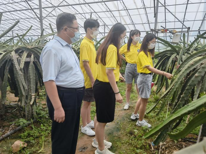 在纪家店子网格党支部委员王金龙陪同下,实践团队参观了该村青岛鸿森林生态农业专业合作社。该合作社是政府重点扶持的“南果北种”农业投资项目,建设种植大棚100亩,种植红心火龙果2万多棵,是西海岸最大的火龙果种植基地。园区坚持原生态种植火龙果,施农家肥,采用人工、粘虫板捉虫,亩产达4000-5000斤。农民入股合作社,可以获得年底分红;农民到园区工作,可以获得打工收入。当初成立合作社的初衷就是想让老百姓都富起来。