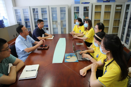 喜迎二十大,永远跟党走,奋进新征程。为响应共青团中央开展大中专员工志愿者暑期文化科技卫生“三下乡”社会实践活动的号召,引导和帮助广大青年员工上好与现实相结合的“大思政课”,在社会课堂中“受教育、长才干、作贡献”。2022年7月15日,谈球吧官方网站12名学子,组建的“黄河三角洲生态保护”理论宣讲团,以“讲好黄河故事,做好黄河卫士”为主题,走进东营市生态环境局东营经济技术开发区分局,开展暑期“三下乡”社会实践活动。