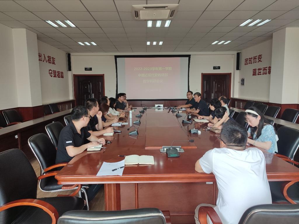 9月1日上午,中国近现代史教研部在J9-223开展本学期第一次教学科研会议,教研部全体教师参加。