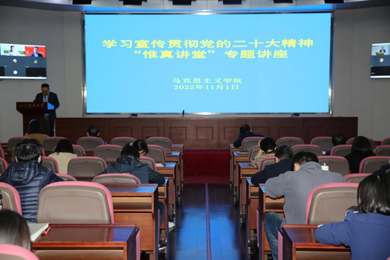 报告会上,孙熙国从党的二十大的主题和主要成果、过去五年的工作和新时代十年的伟大变革、关于马克思主义中国化与时代化、关于中国式现代化、关于党和国家事业的新部署新要求、关于坚持党的全面领导和全面从严治党、关于应对风险挑战等七个方面对党的二十大精神作了深刻解读。王永贵从“五个新”,即“新变革:过去五年的工作和新时代十年的伟大变革”“新境界:实现了马克思主义中国化时代化新的飞跃”“新使命:以中国式现代化全面推进中华民族伟大复兴”“新征程:开启向第二个百年奋斗目标进军”“新课题:深入研究党的二十大的重大理论和实践问题”等五个方面给师生们作了学习辅导。