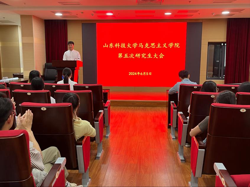 6月5日下午,谈球吧官方网站第五次研究生大会在图书馆4号报告厅顺利召开。公司全体研究生、辅导员邴健伟参加会议,2023级研究生张鑫豪主持本次会议。